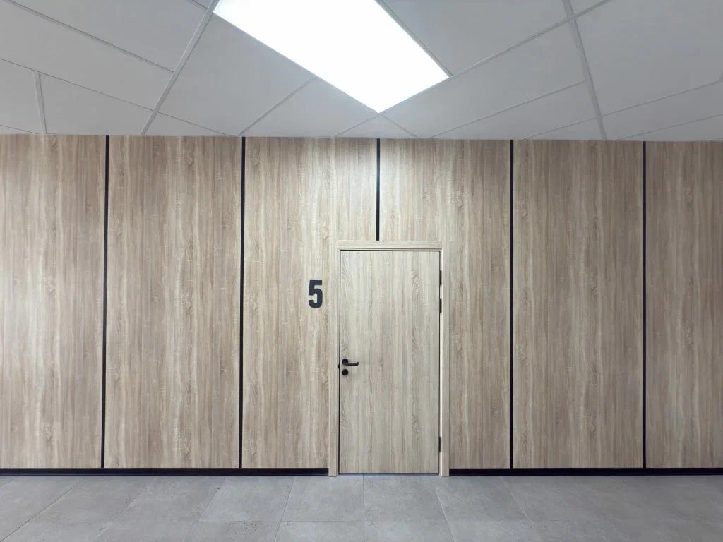 Стеновые панели на основе гипсокартонного листа ГКЛ, ламинированные под дерево с текстурой Дуб сонома светлый по каталогу ПВХ пленок. Обладают балансом плотности и прочности со способностью к изгибу, устойчивы к нагрузкам и механическим повреждениям. Решение отлично подходит для отделки стен спортивных объектов, офисов, торговых помещений, детских садов, школ и других общественных и коммерческих помещений.